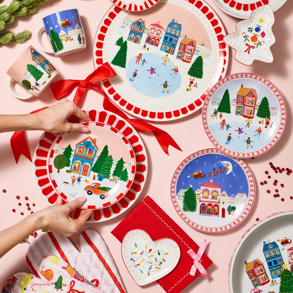 Porto has captured the magic from the night before Christmas to bring you this festive collection. Whimsical houses and snow-covered streetscapes bring a light-hearted feel to this series of porcelain serveware and dinnerware pieces. Merry tones of cherry red, leafy greens and soft blues are finished with sweet bow detail. This joyful collection is packaged in full-colour gift boxes for an easy Christmas gift-giving solution.