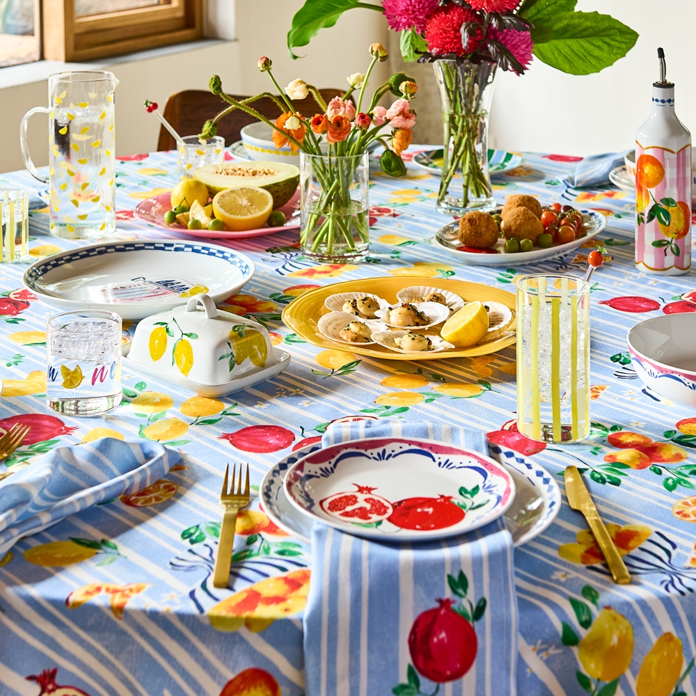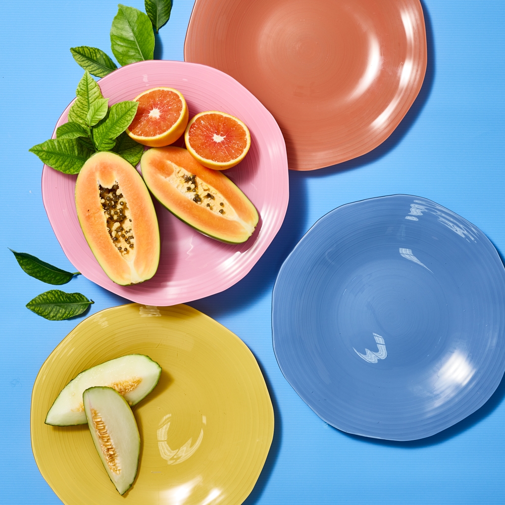 Porto’s Campania collection provides the colourful base for your table setting. Made of glass, these vivid charger plates offer a translucent quality with a visible, tactile ridging underneath and an organic shape. With a high gloss finish, Campania is available in four colours of Coast blue, Sunflower yellow, Rose pink and Coral peach.