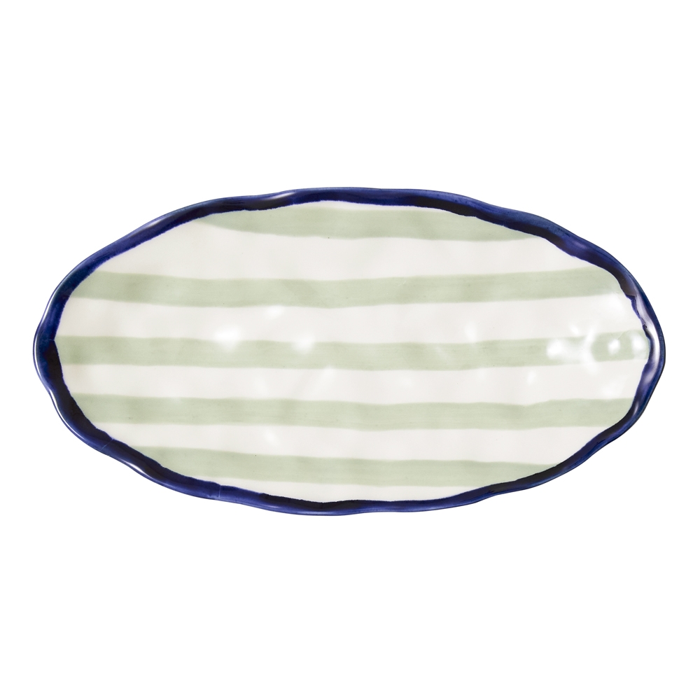 Sage-green stripes and deep navy rims give the Sable collection a splash of easy-going charm.